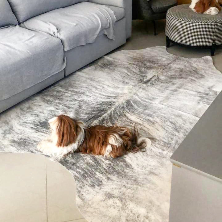 Tapete de couro cinza com branco - 2,00 x 2,10
